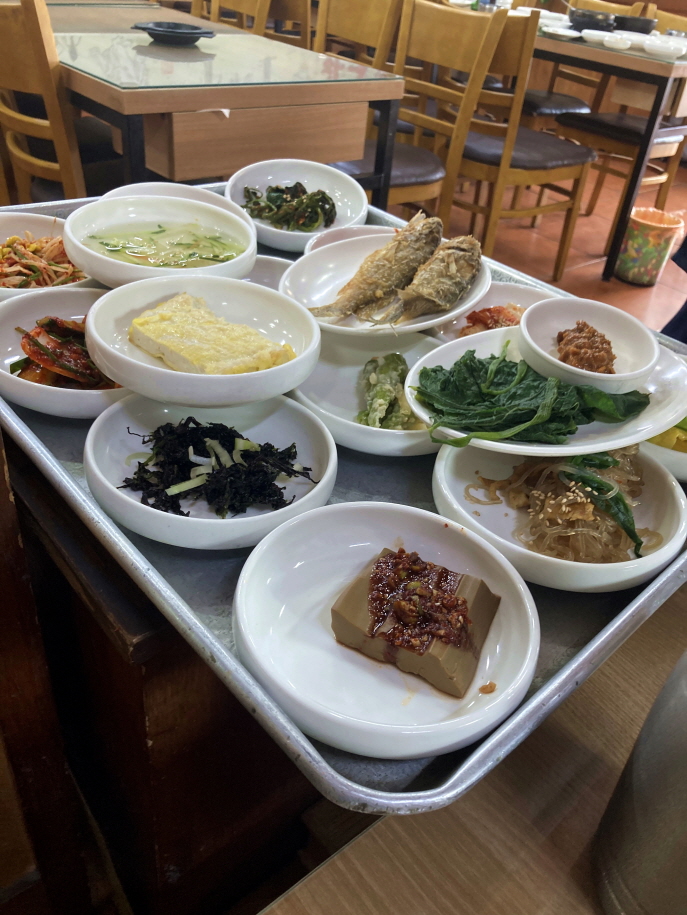 커다란 쟁반 가득히 반찬을 싣고 오신다. 그냥 들기에도 엄청난 무게처럼 보이는데 매일 이 반찬들을 몇 번을 계속해서 나르실까. 벌써 맛있는 냄새가 코를 찌른다.