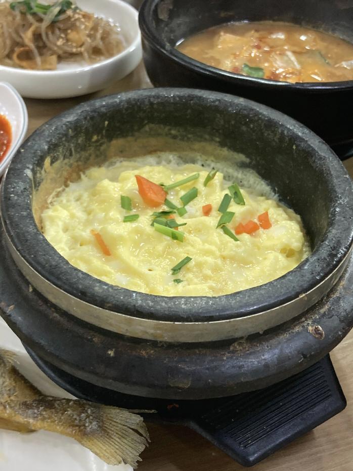 포슬포슬한 계란찜이다. 이건 간이 거의 안되어있었다. 반찬들이랑 찌개들이 간이 쎄니까 뭔가 중화시켜주는 메뉴가 된 느낌이라서 좋았다. 전주 백반 맛집에 뚝배기 계란찜이 빠질 순 없으니까!