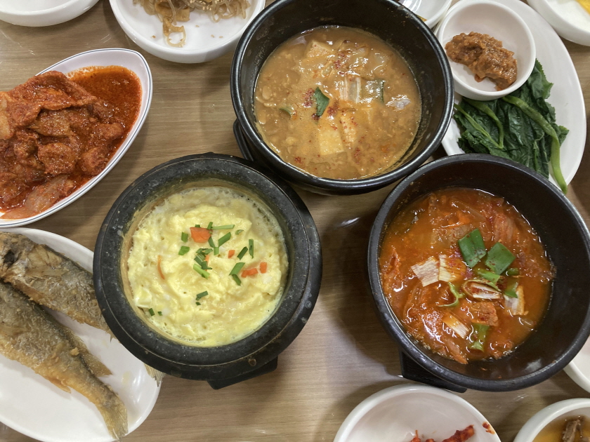 모든 테이블마다 무려 뚝배기 3개씩이 나오는 전주 한국식당