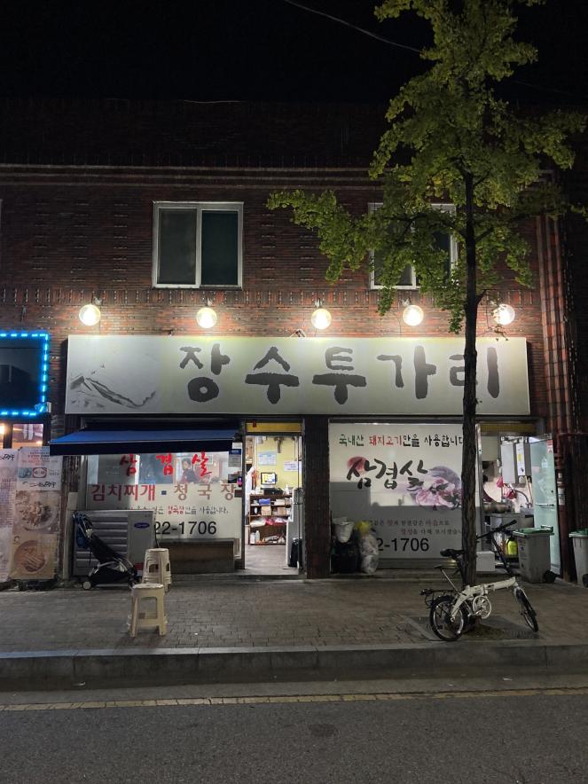 외관부터 맛집. 외관 맛집이라면 갖출것들을 거의 갖춘 느낌이다. 오래된 듯한 느낌의 빛바랜 간판, 그에 걸맞은 식당 이름 장수투가리. 왁자지껄 시끄러운 사람들이 이야기 소리가 들린다.