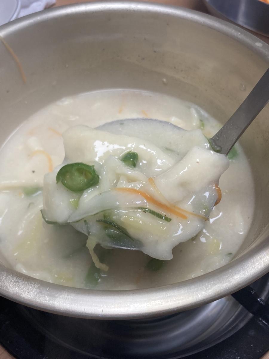그리고 새우탕이 비워질 쯤이면 마지막으로 나오는 세 번째 양은냄비. 바로 들깨수제비이다. 사실 이 수제비를 먹으려고 지금까지 먹 투어를 했다고 해도 과언이 아니다. 정말 깊고 진한, 진득진득한 맛이 느껴지는 들깨수제비. 수제비도 손수제비라서 식감도 남다르다.